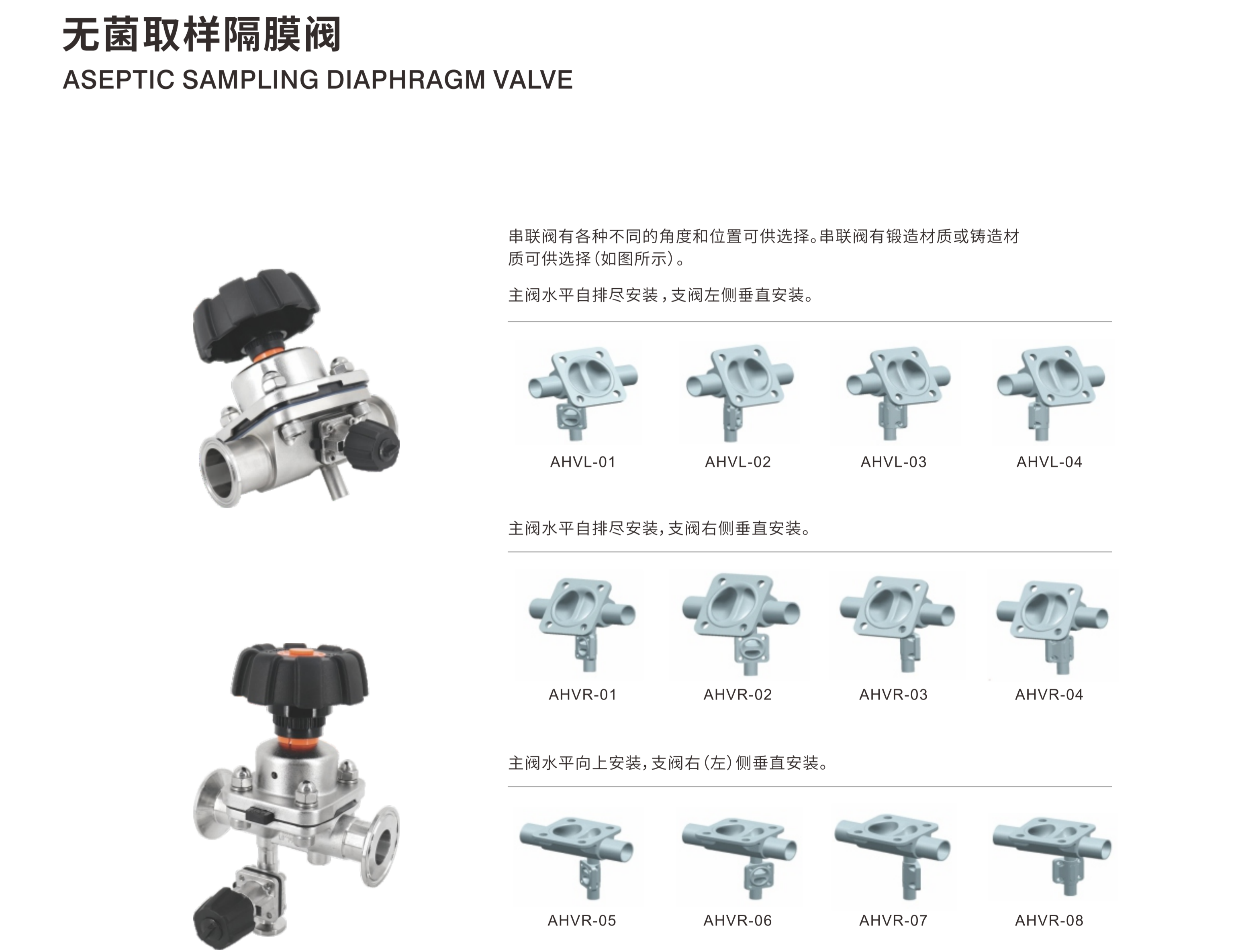 | Anwendungsbereich: | Mehrwege-Membranventil mit geschmiedetem Gehäuse, fachmännisch entwickelt für Anwendungen in der Lebensmittel-, Getränke-, Molkerei-, Brauerei- und Pharmaindustrie. Es bietet hervorragende Leistung sowohl bei der Durchflussregulierung als auch im Ein/Aus-Betrieb. |